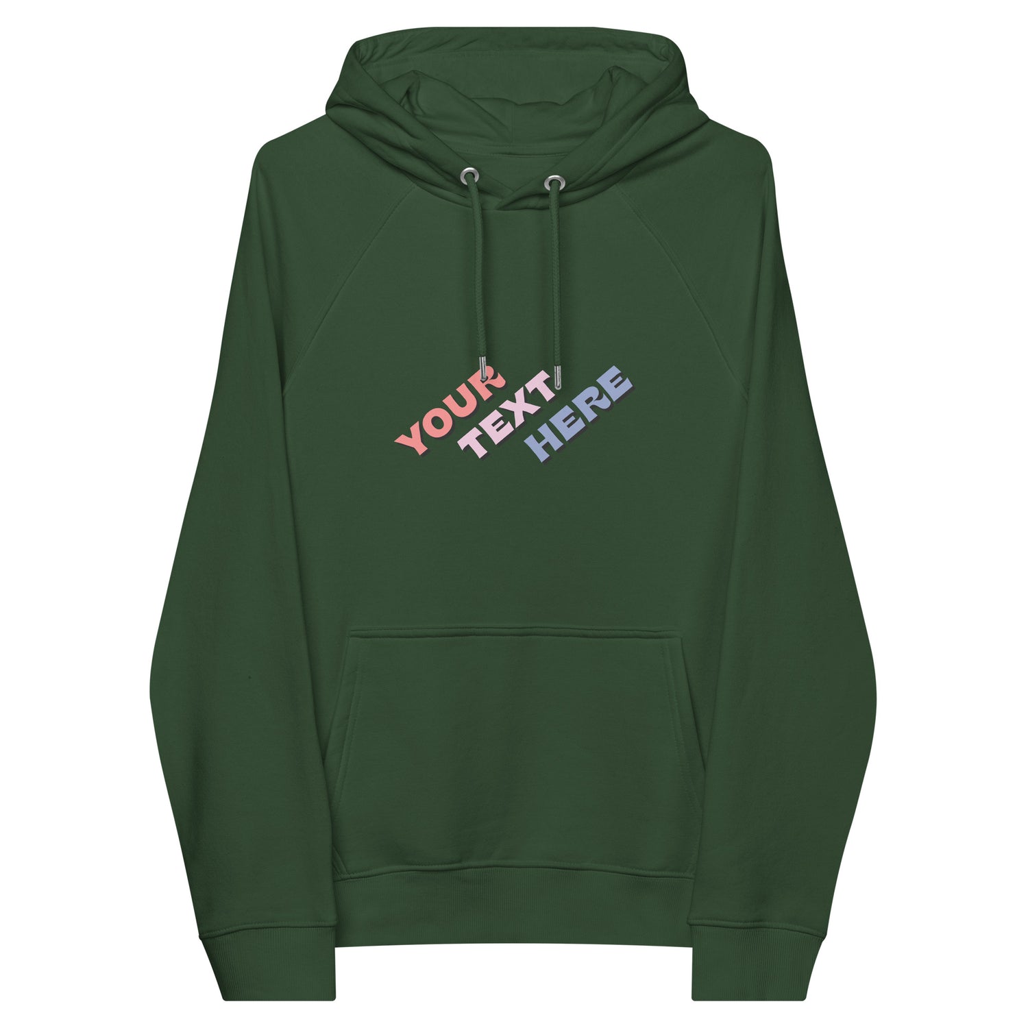 Get CREATIVE and make this hoodie your own! Simply pick the color and size you would like then click the personalize design button. You change the text to whatever YOU desire. You can change the text color and outline color so go for whatever fits your eye. When finished your design hit add to cart and checkout accordingly. We will take your design and transfer it to this organic cotton beauty. Then ship it out to you fast and FREE.