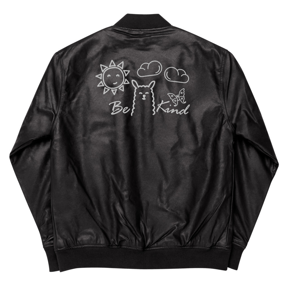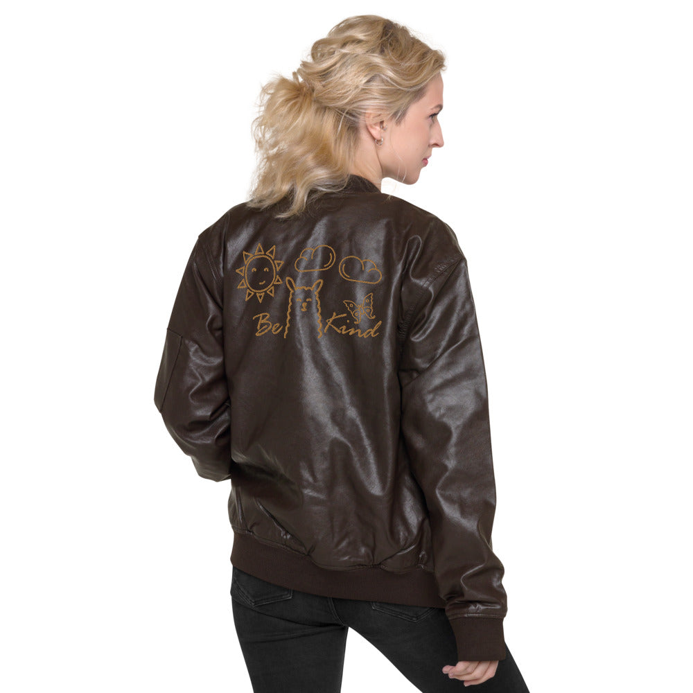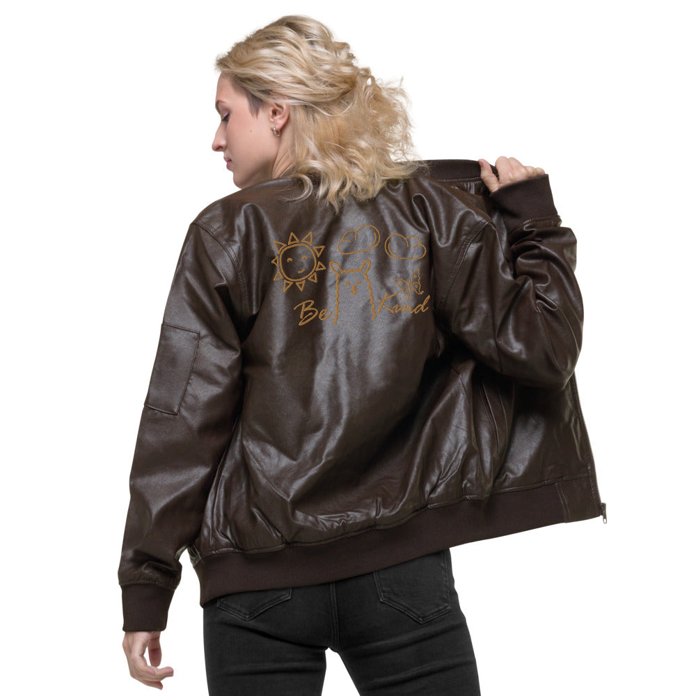 VEGAN "BE KIND" Unisex Embroidered Faux Leather Bomber Jacket