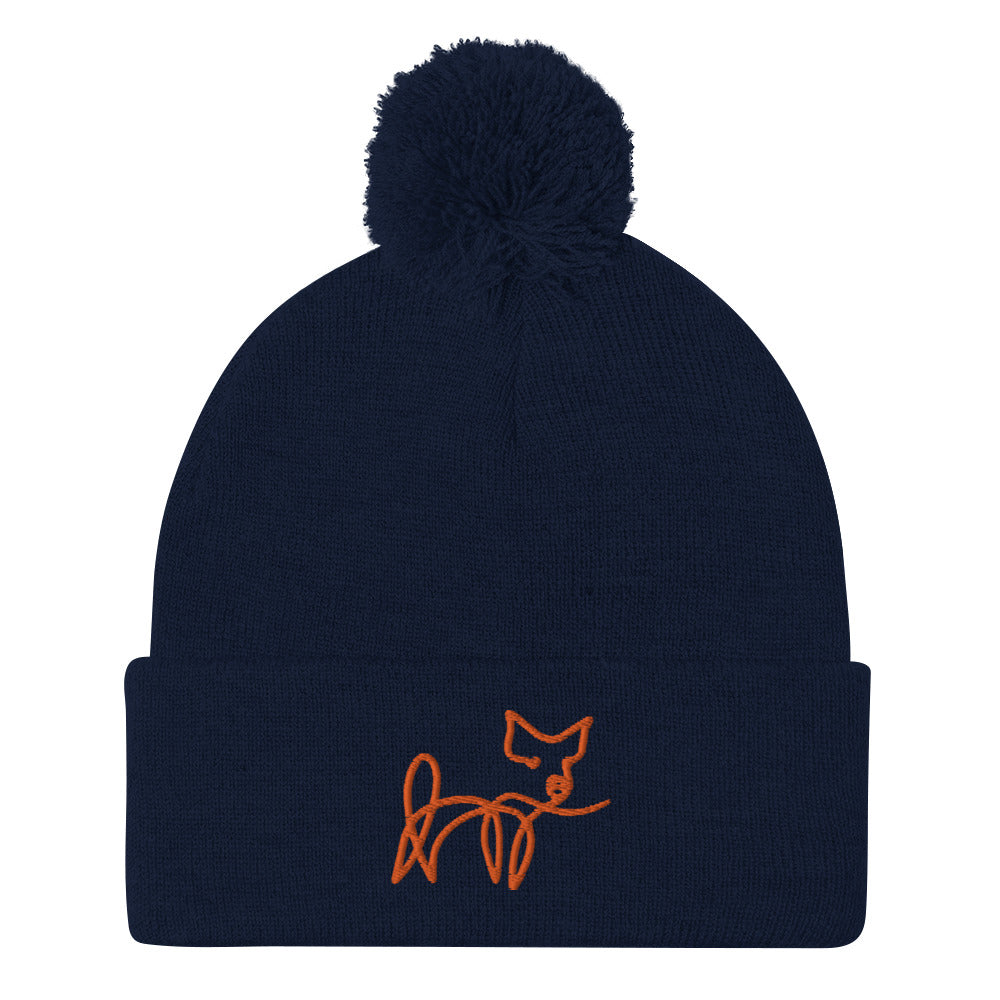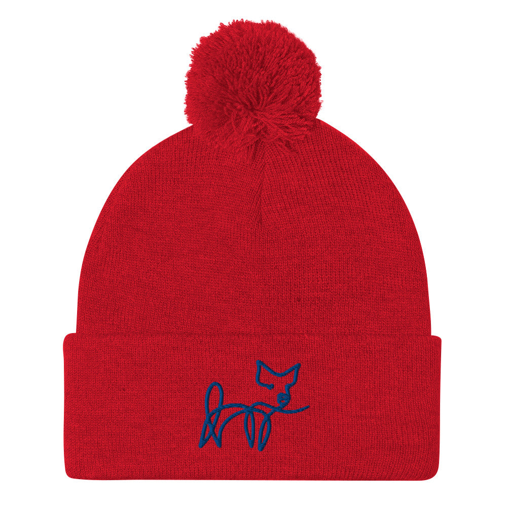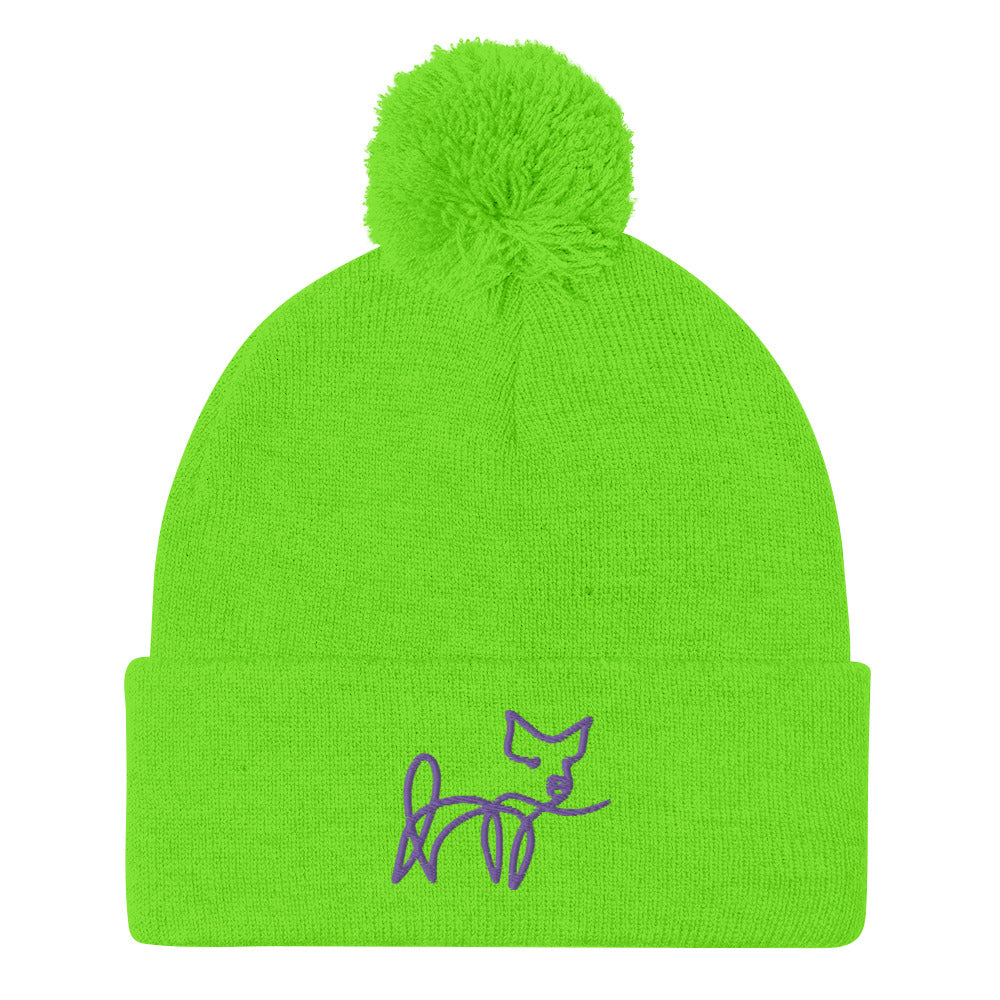 VEGAN " Calligraphy Pig" Embroidered Pom-Pom Beanie