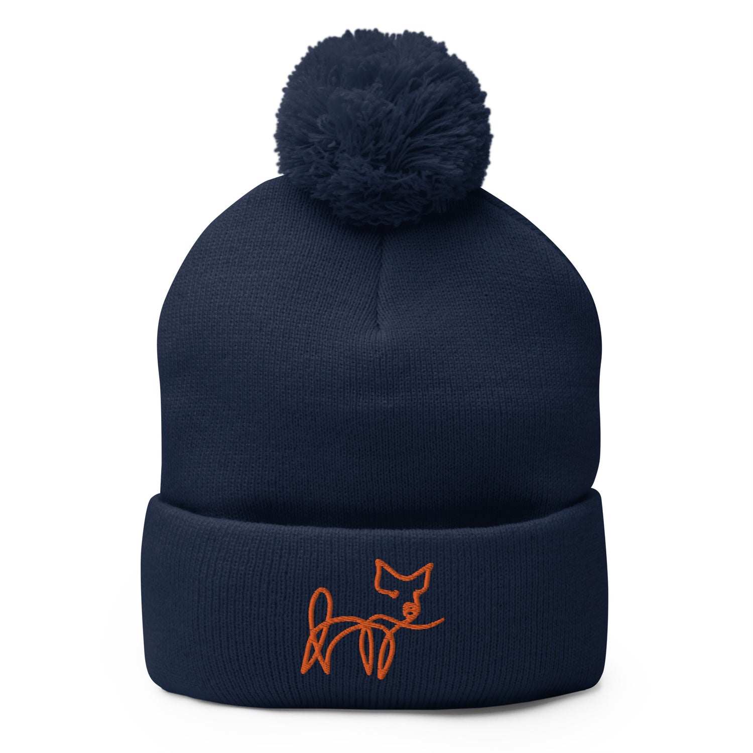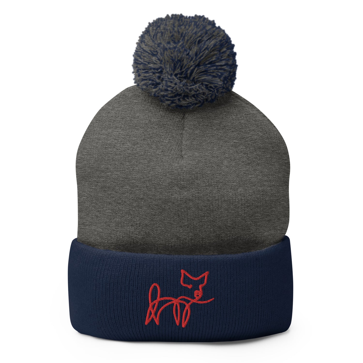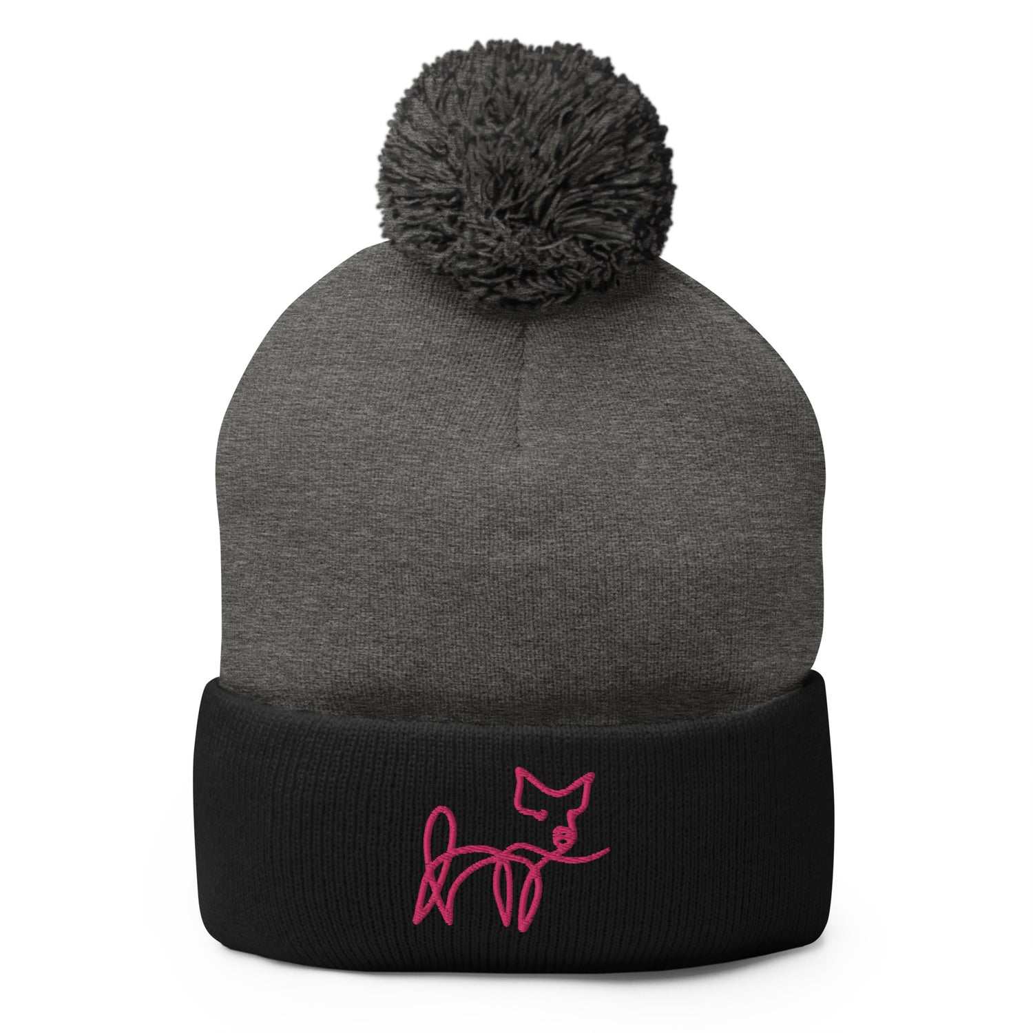 VEGAN " Calligraphy Pig" Embroidered Pom-Pom Beanie