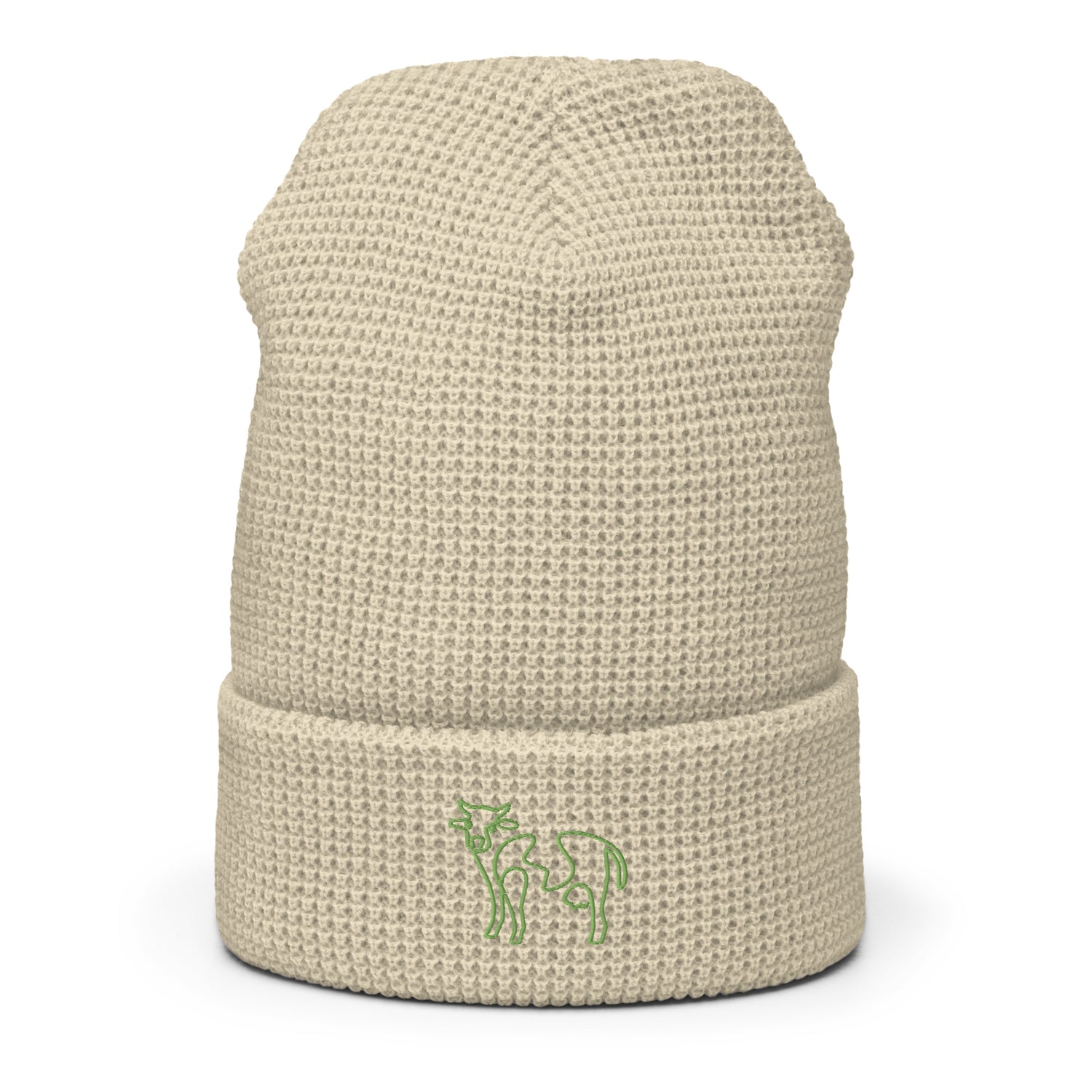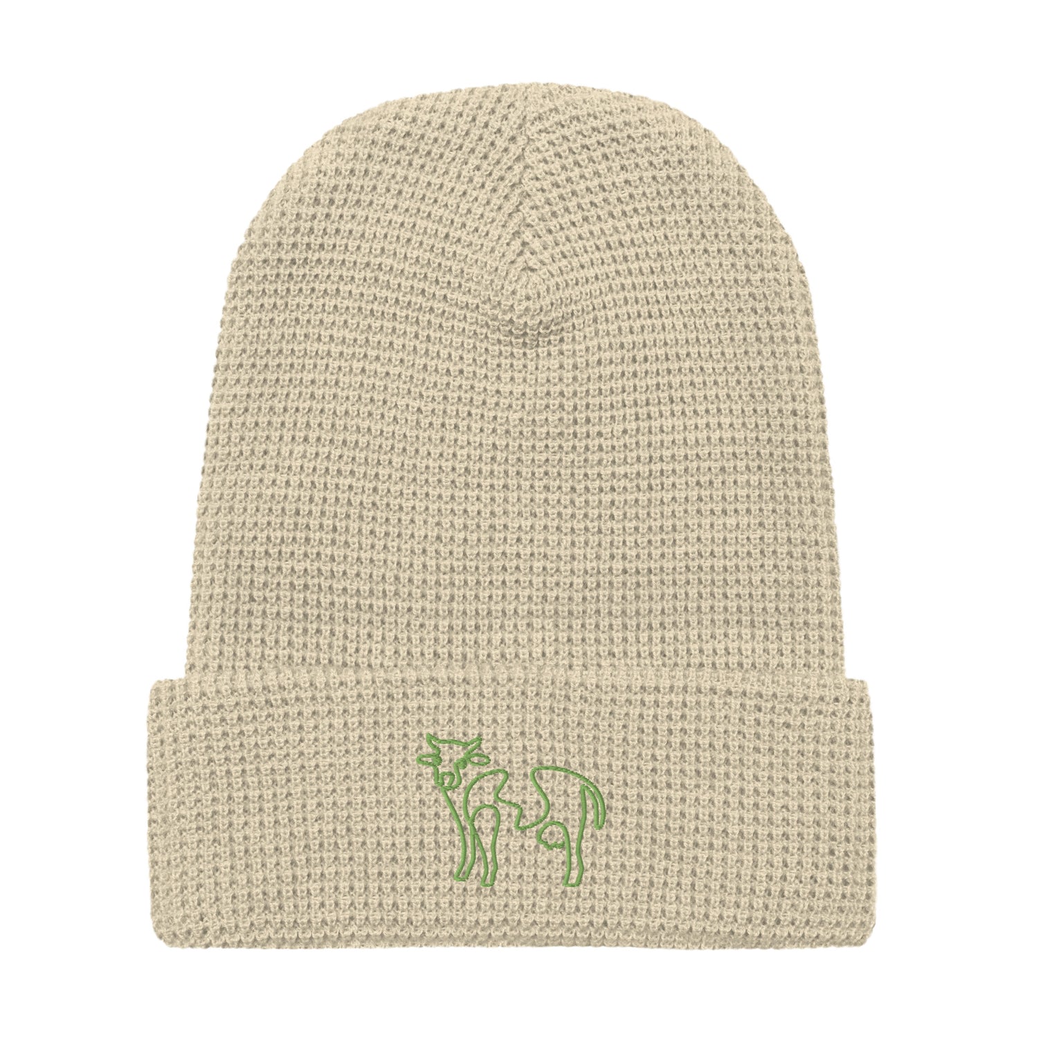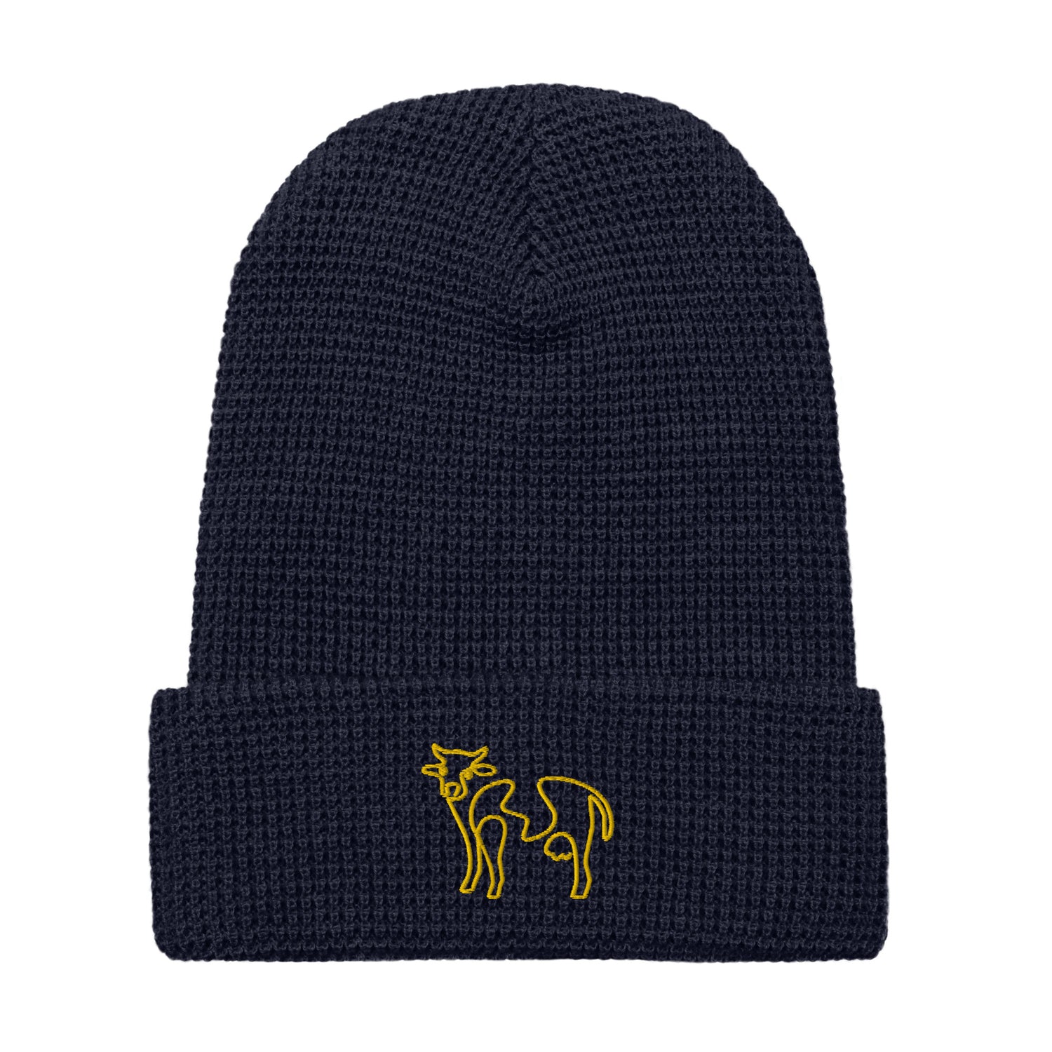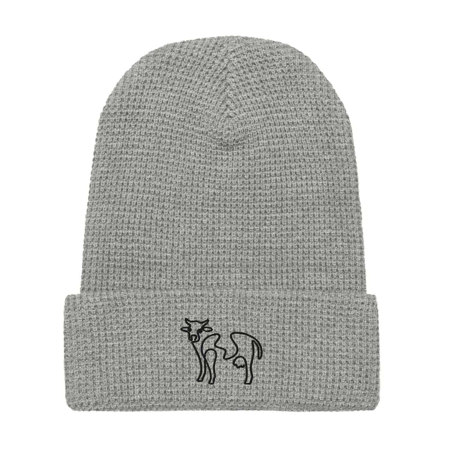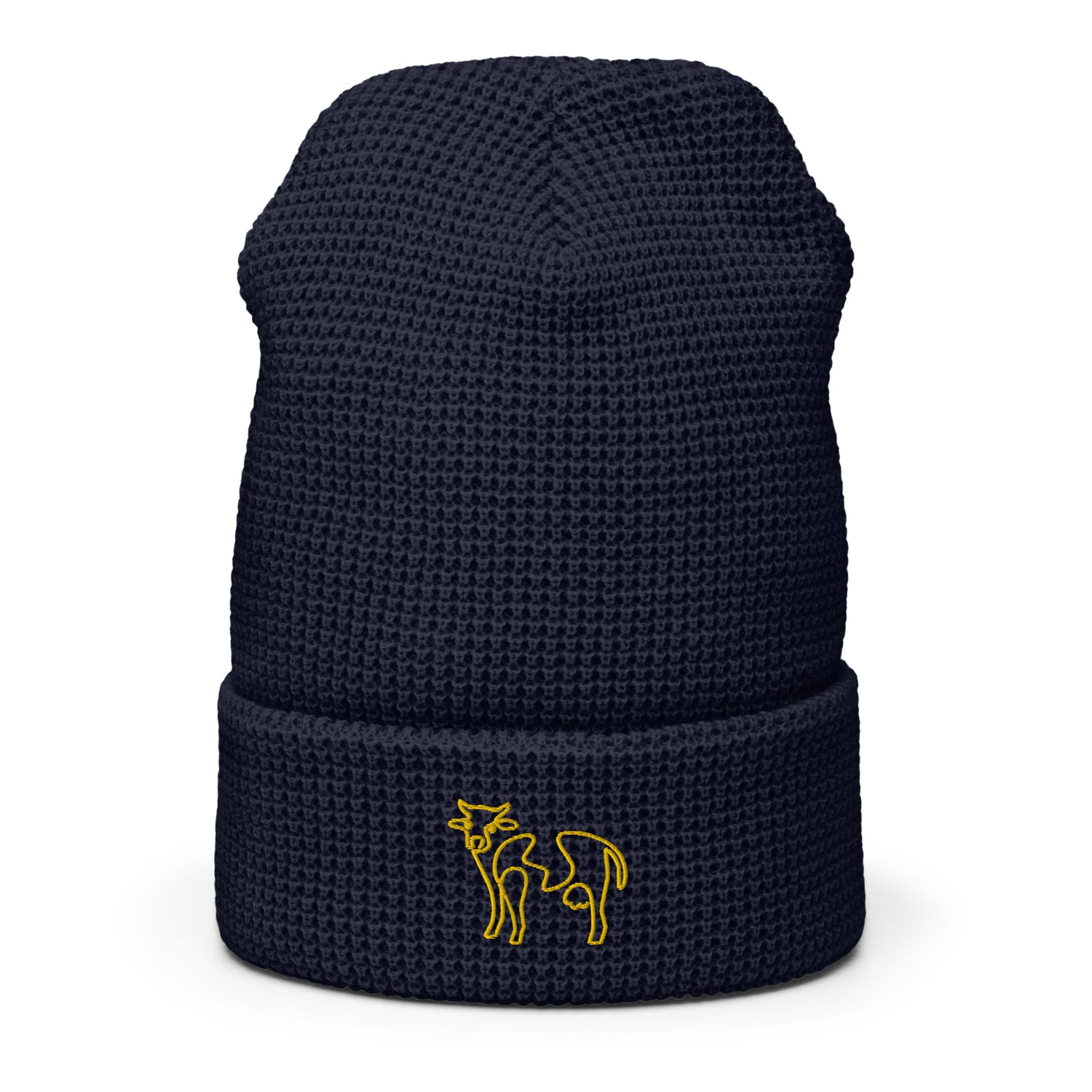 VEGAN " Cow Calligraphy " Embroidered Waffle beanie