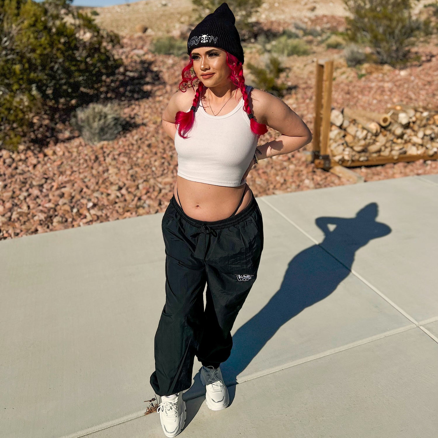 Whether heading to the office, date night, or gym— Let EVERYONE know your VEGAN 😜 in these super comfy recycled tracksuit embroidered pants. Pair them with the matching jacket, a t-shirt, or even a blazer and create a great combination of casual and classy. Made of 100% recycled nylon that’s lightweight and water repellent, keeping you protected and comfortable during the rainy days.
