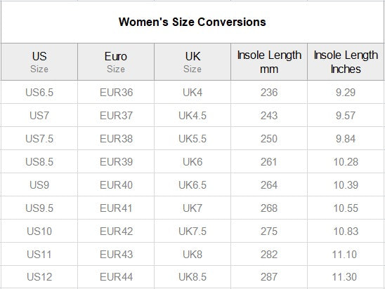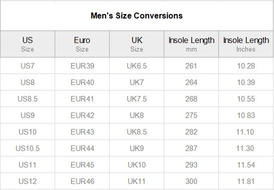 BASE SIZING OFF LENGTH IN INCHES FOR MOST ACCURATE FIT!