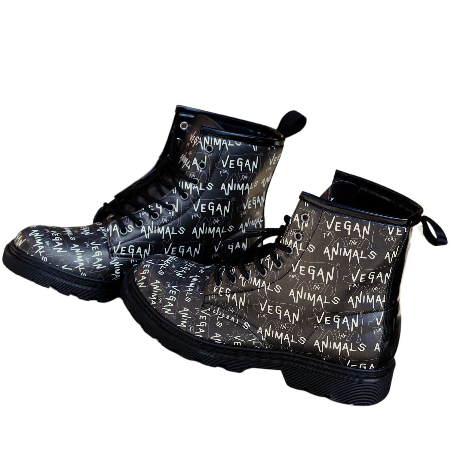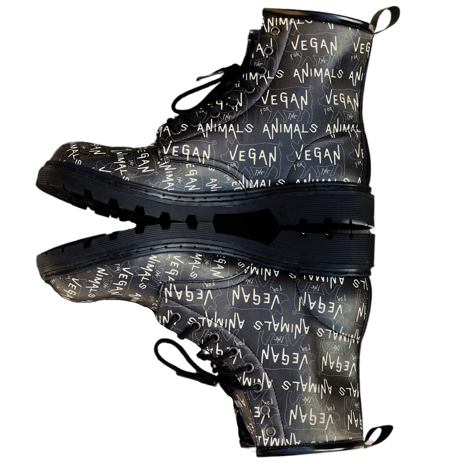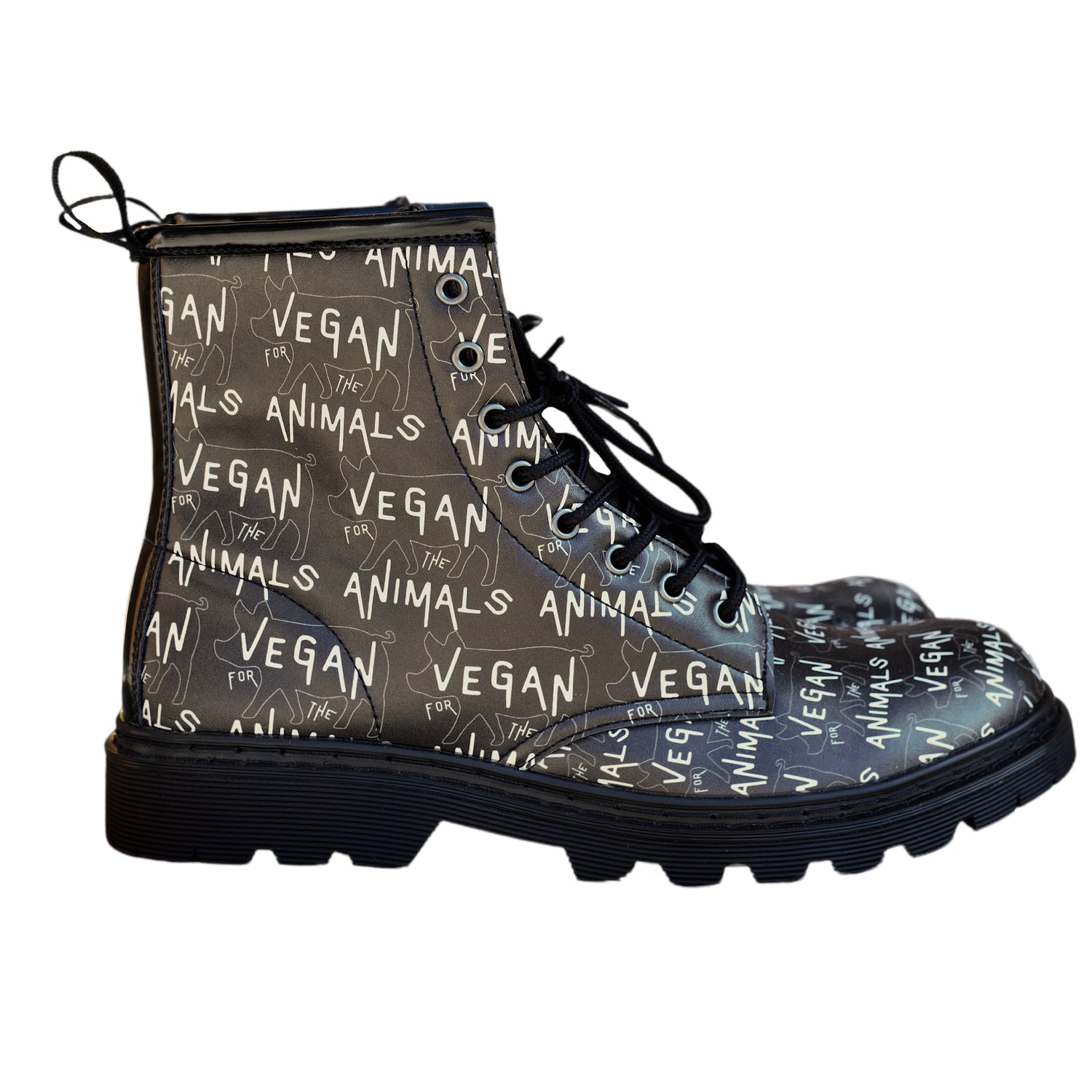Stay Grounded & Fight for the cause in our Vegan For The Animals boots! Not only do they look great with their classic design, but they PROMOTE what true veganism is about - perfect for those who don't want to sacrifice style and want to wear their activism. Grab your boots today and lace up for a good cause!