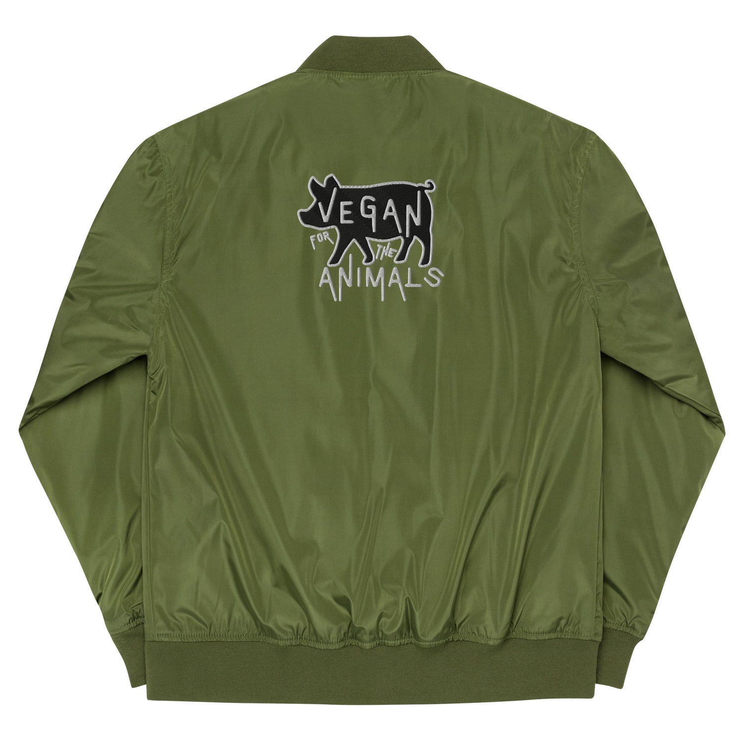 VEGAN FOR THE ANIMALS Premium Embroidered Recycled Bomber Jacket