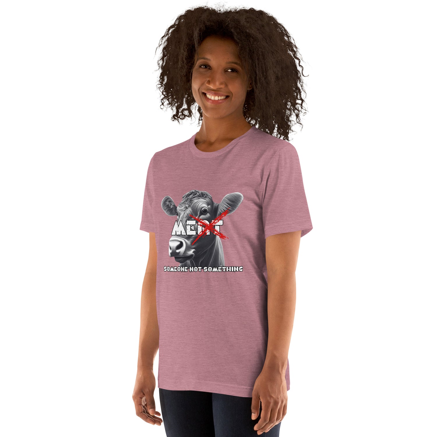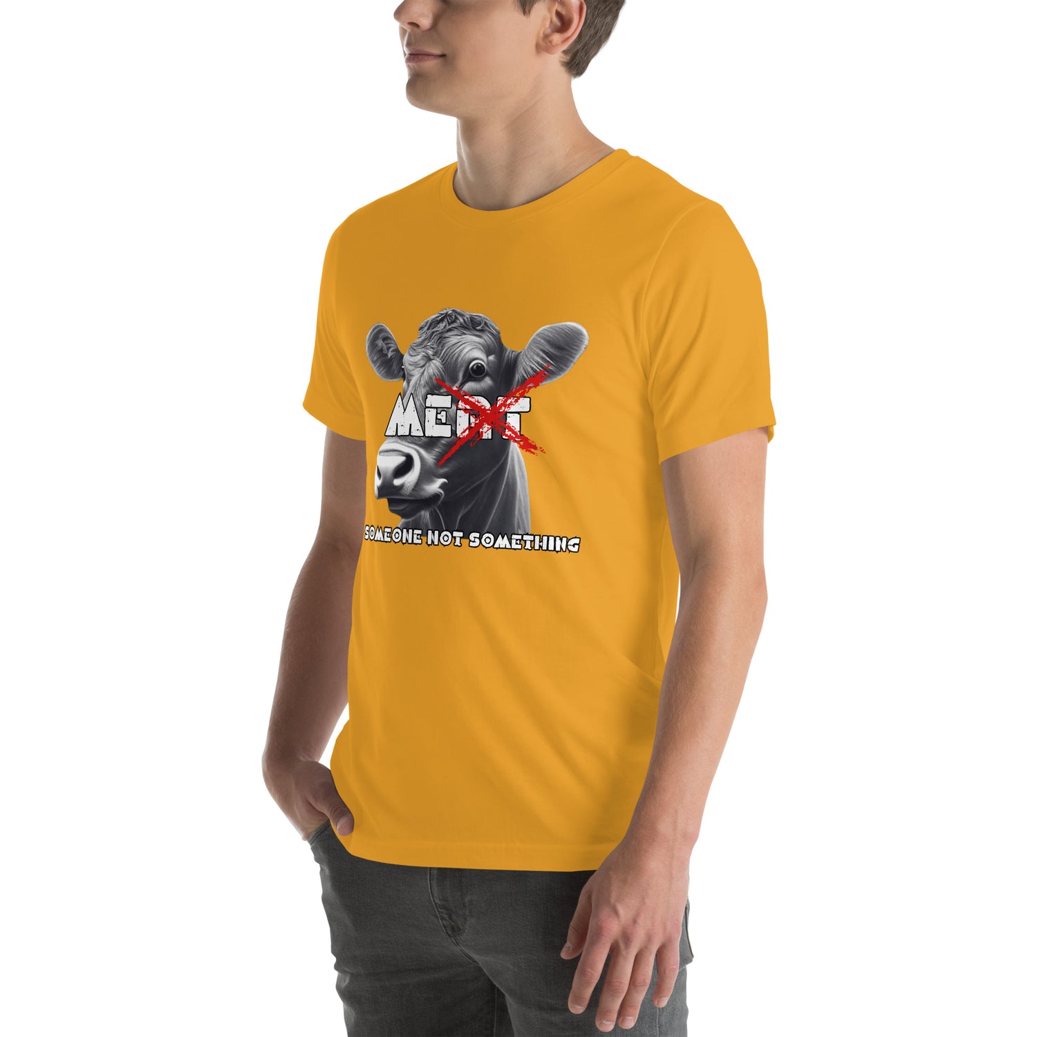 "Raise awareness for veganism with our VEGAN "MEat" Unisex Cotton T-shirt. Made with premium lightweight cotton, this shirt is a comfortable and stylish way to promote vegan activism. Show the world that eating "meat" means eating someone, not something.